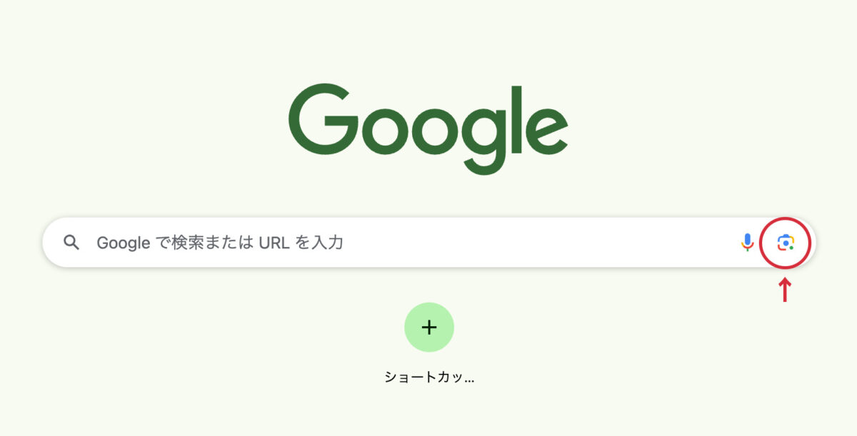 検索バーの右側にある「📷 カメラアイコン」をクリックしましょう。