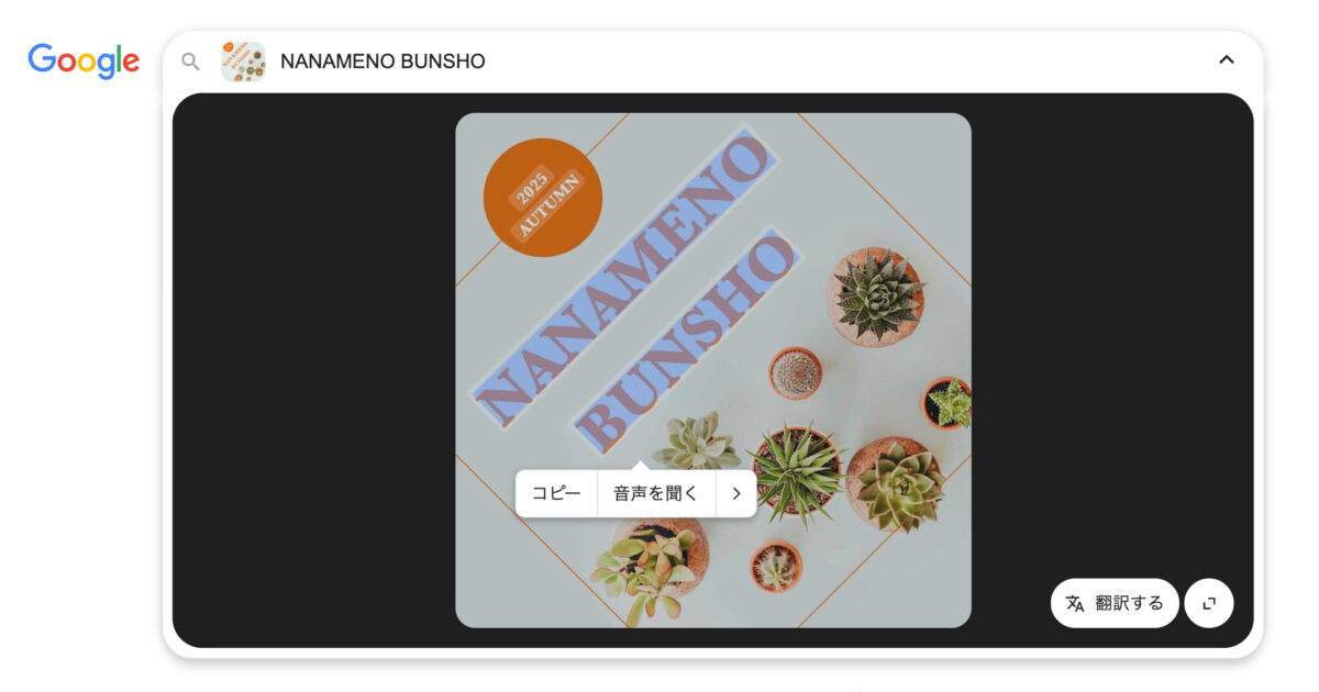 画像をアップすると、Googleレンズが自動的に中のテキストを認識します。