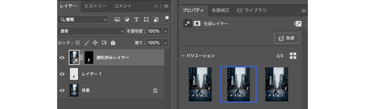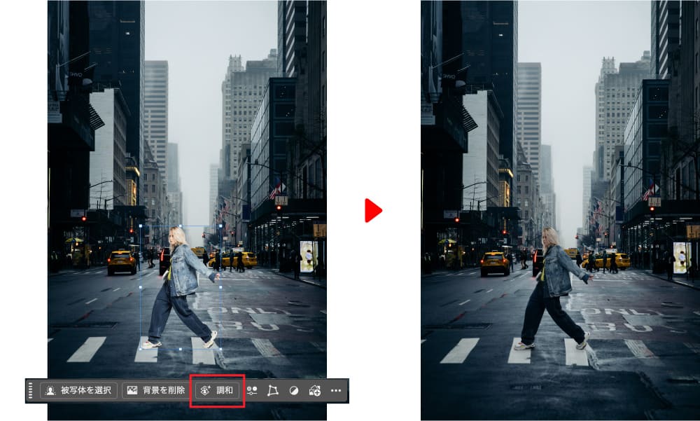 その中の「調和」をクリックすると、生成AIが起動し自動で馴染ませてくれます。