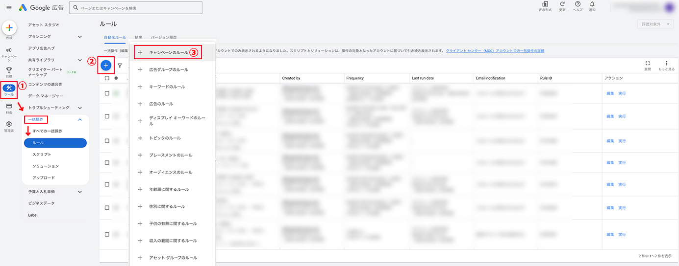 ③「キャンペーンのルール」を選択。