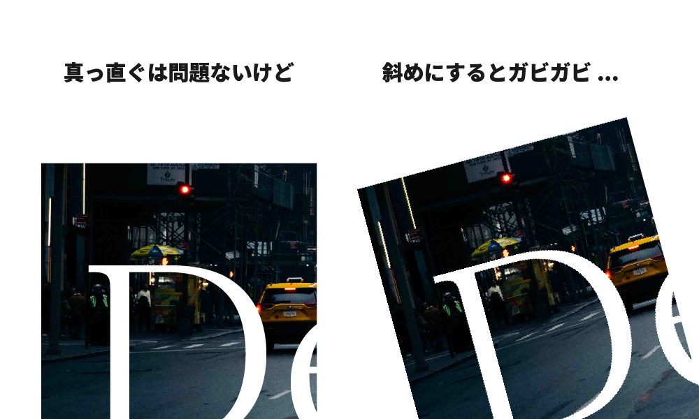 また、極細線や小さい文字は、縮小時にジャギーが強く出やすくなります。そのような場合は、文字や細い線は太めに調整して改善できることもあるので、一度試してみてください。