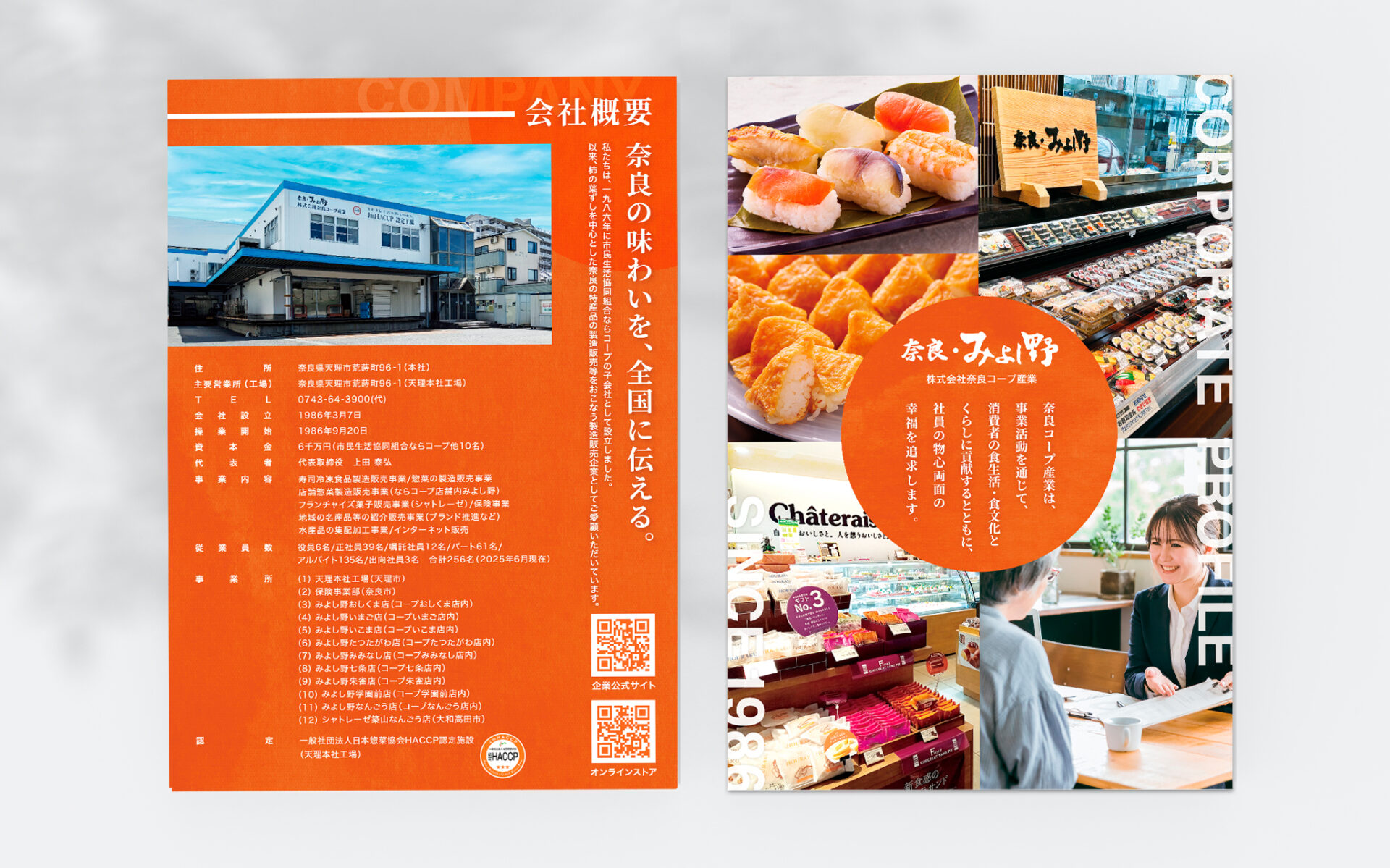 GRAPHIC 株式会社奈良コープ産業様 クライアント 株式会社奈良コープ産業様 業種 食品製造販売事業 仕様詳細 B5 二つ折りパンフレット 期間 2週間 提供サービス パンフレットデザイン PREV NEXT